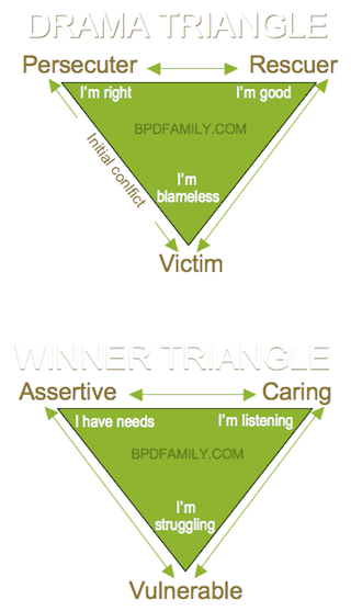 The drama triangle can be countered with the “winner triangle”. I can talk with you in more detail about these ideas and how to use them.